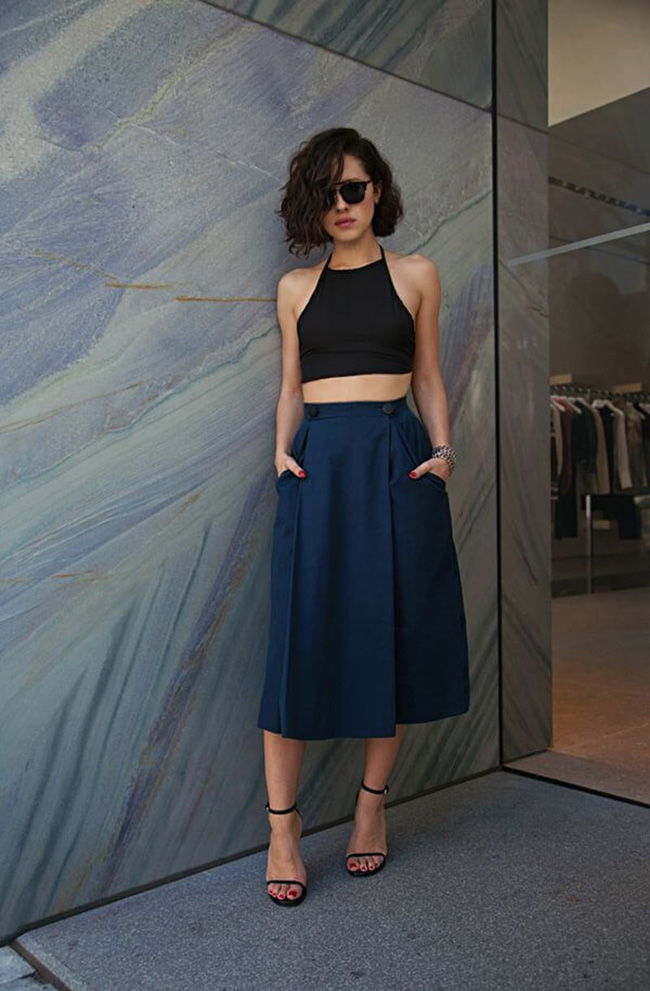 Một chiếc crop top dài tay hoặc cao cổ vào mùa đông kết hợp với chiếc váy cạp cao sẽ làm bạn trông vừa sành điệu mà vẫn kín đáo chốn văn phòng. Nhưng, một chiếc crop top hè với quai dây, cổ khoét sâu, hở bụng, chất liệu mỏng sẽ là cơn ác mộng cho đồng nghiệp khi bạn mặc nó đi làm.