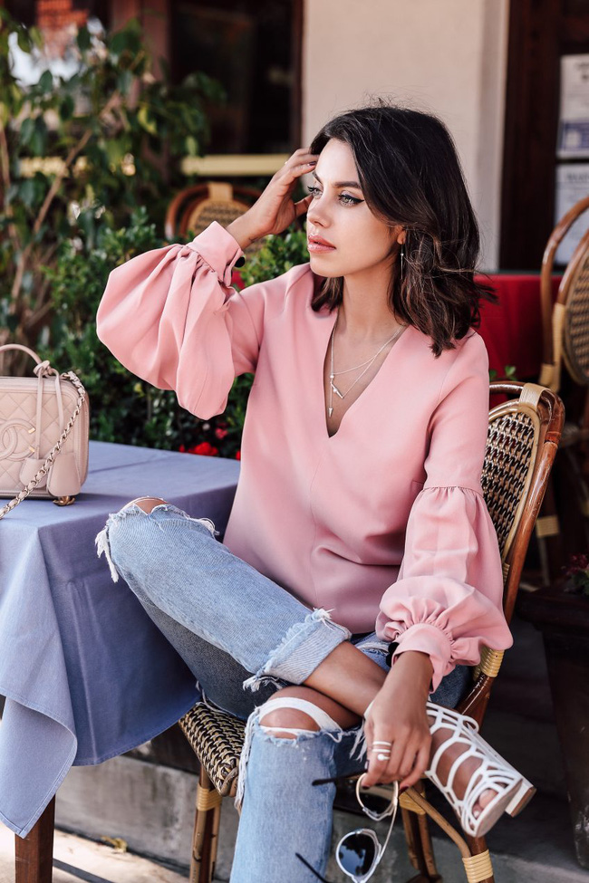 Nếu phần bắp tay quá to, hãy thử cho mình một chiếc áo cổ chữ V cách điệu