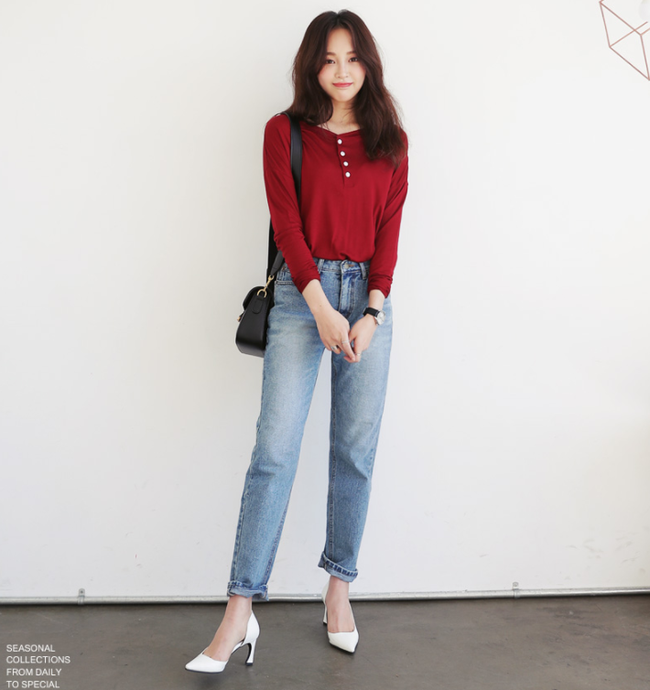 Nếu như quần jeans dáng skinny giúp tôn dáng tối đa, thì những mẫu jeans ống suông lại mang cảm giác thoải mái, năng động cho các nàng. Mẫu quần với phần ống rộng sẽ xua tan đi những oi bức, nắng nóng của tiết trời hè. Ngoài ra, quần cũng giúp các nàng che đi nhược điểm phần đùi không được thon gọn.