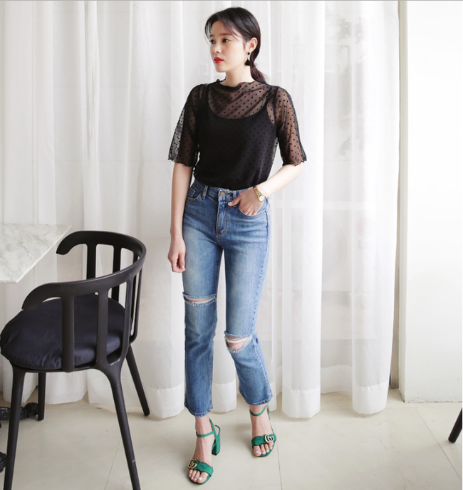 Những vết rách của quần jeans luôn tạo cảm giác mát mẻ, thoải mái cho người mặc. Không những vậy kiểu quần này vẫn đang là item mà các nàng đặc biệt yêu thích không kể phong cách hay cá tính thế nào. Để set đồ của bạn cá tính, nổi loạn nhưng vẫn chứa đựng nét thanh lịch cần có thì nàng công sở nên chọn những thiết kế có chi tiết rách vừa phải chưa đừng to rộng để lộ nhiều da thịt, vừa kém duyên lại vừa dễ khiến phần chân lộ ra bị cháy nắng.