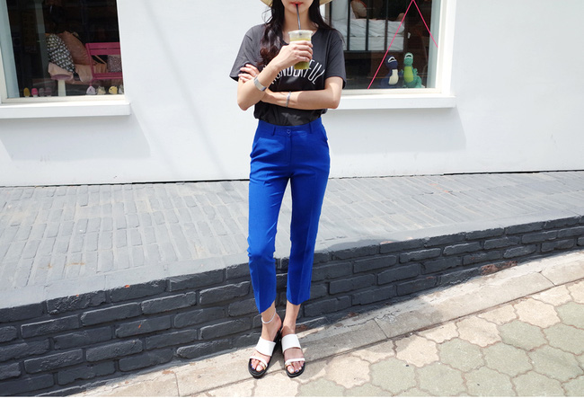Nếu môi trường làm việc của bạn thoải mái thì sao không thử mặc áo tank-top cùng quần vải xắn gấu nhỉ?