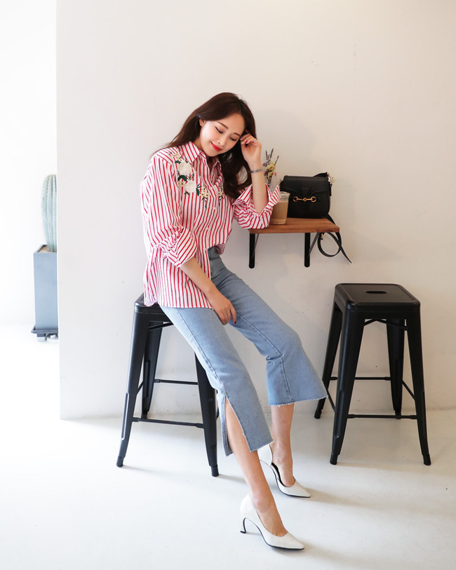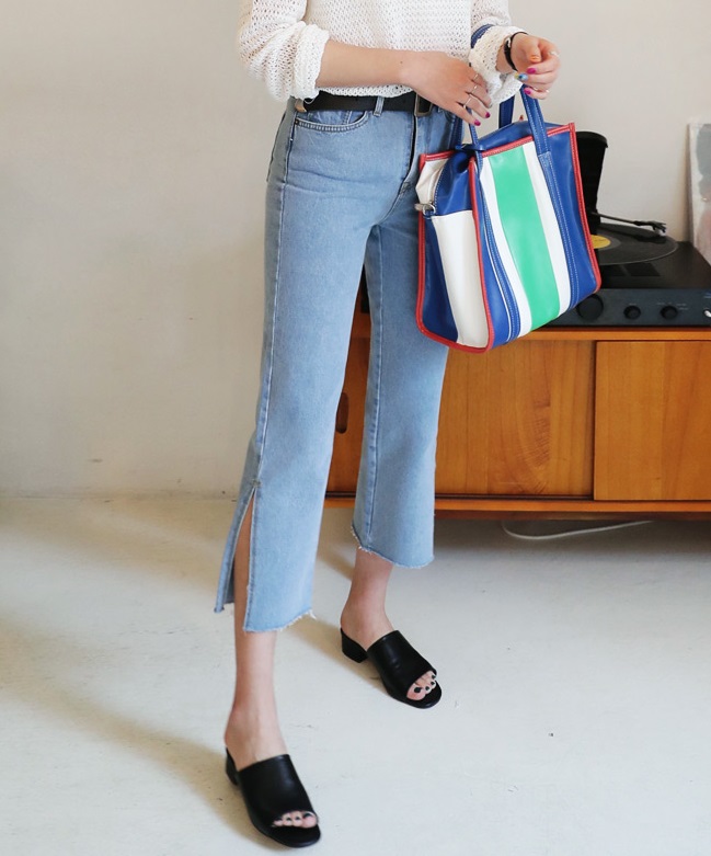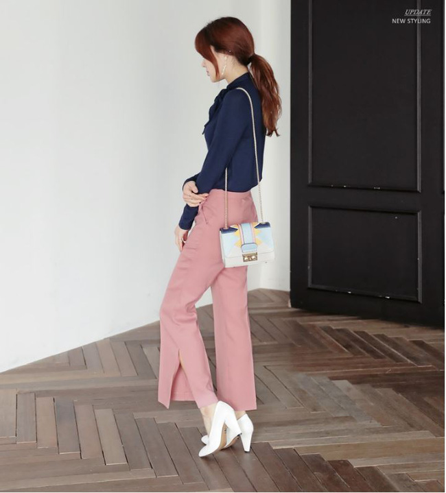 Dáng quần suông ống rộng với phần gấu xẻ cao là thiết kế đang rất được lòng của các tín đồ thời trang. Phần ống rộng thoải mái, mang hơi hướng retro kết hợp cùng đường xẻ gấu giúp giảm bớt cái nóng mùa hè lại tăng độ chất chơi, năng động.