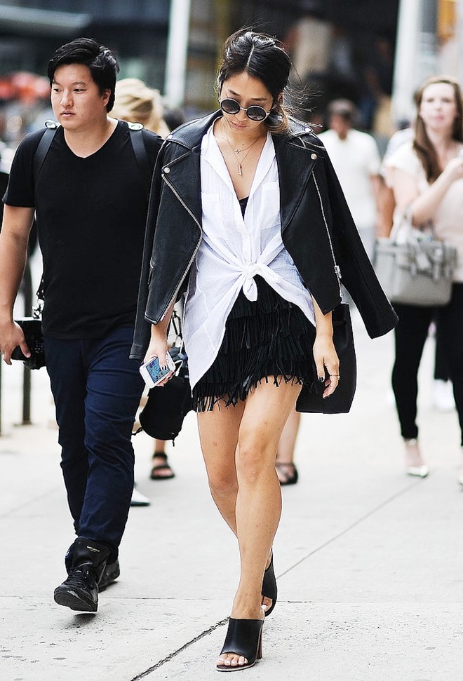 Với những chiếc áo sơ mi bình thường, các nàng đừng vội gài khuy áo cuối cùng khi chuẩn bị bước ra phố, hãy thả khuy áo đó ra và buộc (cột) túm 2 vạt áo lại với nhau. Tùy mức độ mong muốn mà các nàng có thể chỉ buộc nhẹ ở gấu áo hay buộc cao lên đến eo, biến chiếc áo sơ mi thành áo crop-top. Với phong cách street style cá tính này, các nàng sẽ cảm nhận được sự khác biệt khi kết hợp với quần shorts, chân váy maxi, chân váy xòe…