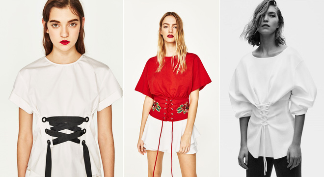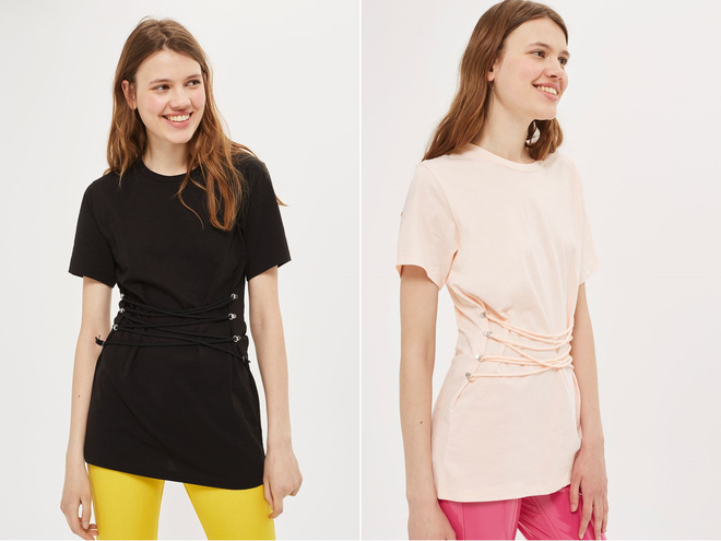 Bên cạnh áo somi, thì những mẫu áo phông cũng được các nhà tạo mẫu nhanh nhạy cập nhật xu hướng corset liền này. Kiểu dáng áo đơn giản, năng động mà điệu đà, lạ mắt với phần eo đính dây khiến thiết kế này trở nên dễ tính và có thể phù hợp với hầu hết mọi phong cách thời trang.