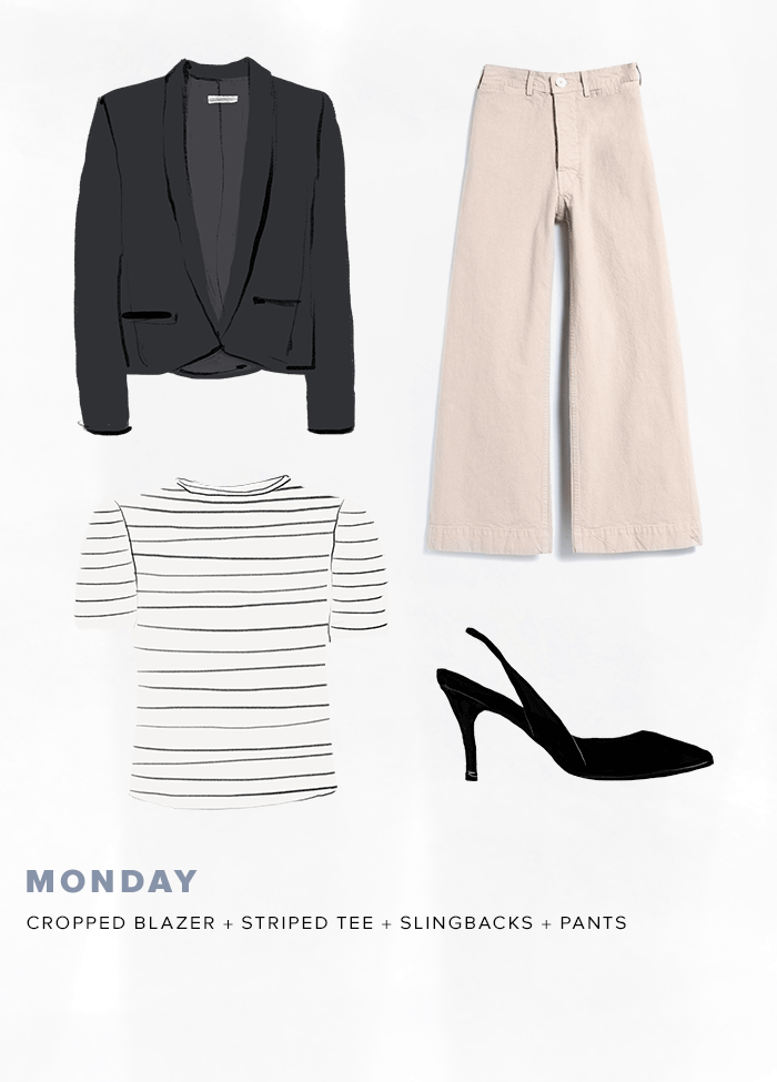 Ngày làm việc đầu tiên trong tuần bao giờ cũng là ngày người ta chỉn chu và nghiêm túc nhất. Vì thế, bạn hãy thử kết hợp quần culottes với áo blazer cách điệu xem sao. Cả hai món đồ đều sẵn sàng một vẻ ngoài thanh lịch chỉn chu mà vẫn mới mẻ, thú vị cho set đồ công sở đầu tuần của bạn đấy.
