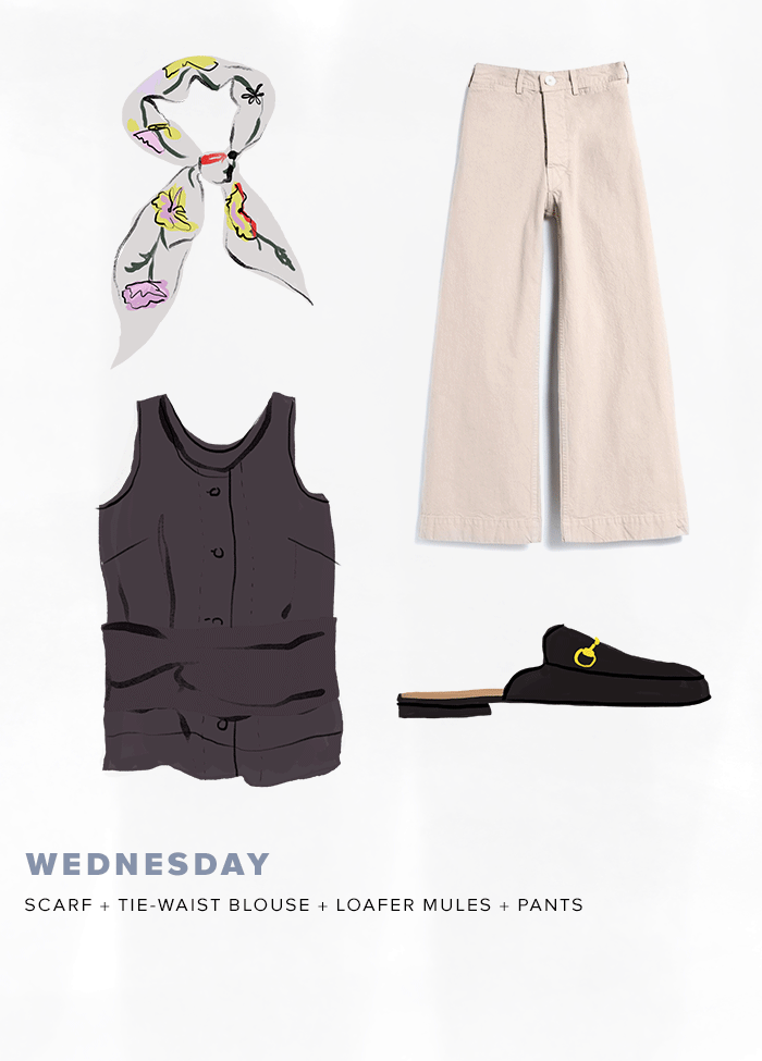 Thứ 3: Áo xếp điệu đà + quần culottes