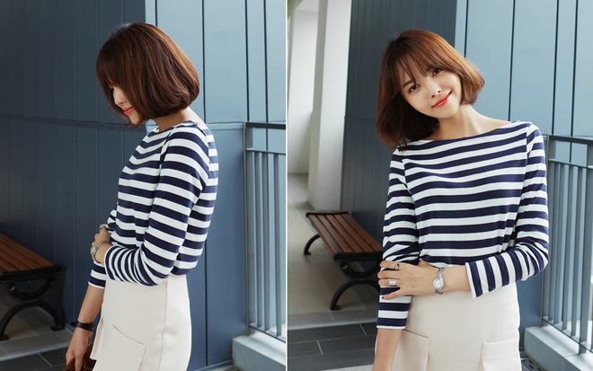 Trước sự cá tính, nổi loạn của một mái tóc ngắn uốn xoăn, ta lại quay về đến nói đến kiểu tóc ngắn nguyên sơ và nhẹ nhàng nhất. Với kiểu tóc bob ngắn để thẳng, có thể là uốn cụp một chút nhưng kiểu tóc vẫn là thẳng và phồng mềm mại, một quý cô công sở hay là một cô nàng mới đôi mươi thì chẳng bao giờ cần lăn tăn khi chọn đồ hợp với kiểu tóc. Và thậm chí khi diện những bộ đồ có phần già dặn, nghiêm túc của chốn công sở thì nhờ có kiểu tóc này mà vẻ ngoài của bạn vẫn vô cùng nhẹ nhàng và xinh xắn, chứ không đứng tuổi như những kiểu tóc xoăn mang lại. Một kiểu tóc mà chỉ cần cắn ngắn đơn thuần cũng đẹp đến mỹ mãn thế này, liệu nàng nào mà không ưng.