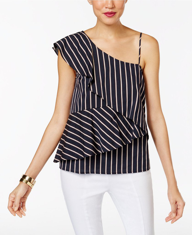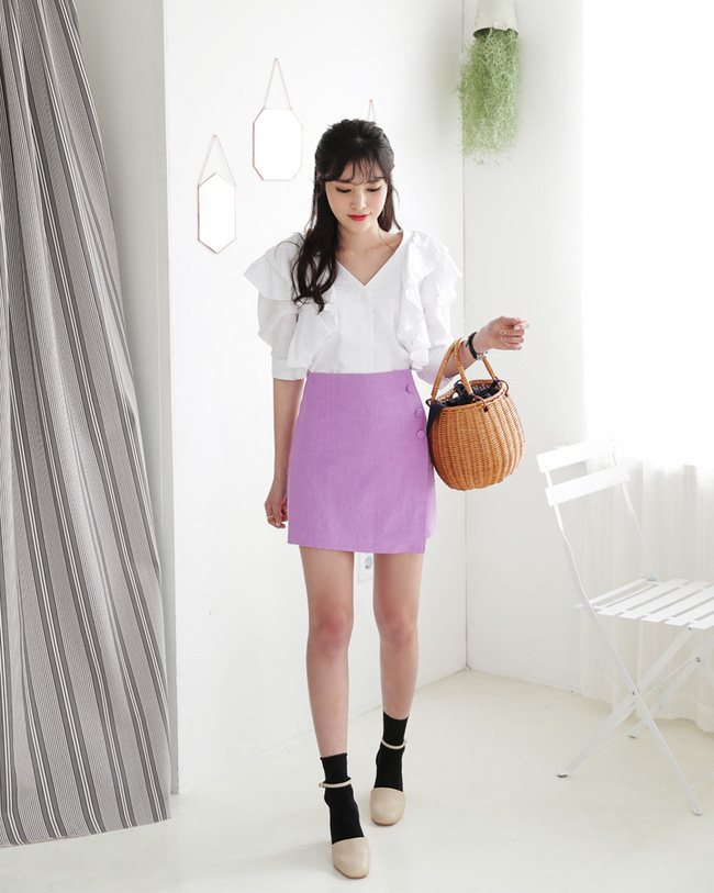 Áo có bèo nhún xếp tầng là một trong những item quen thuộc nhất của các cô nàng nữ tính. Tuy nhiên, để không trở nên lỗi mốt và quê kiểng, bạn hãy chọn áo có phần bèo to, được xếp ngẫu hứng. Với kiểu áo này, bạn chỉ nên chọn chân váy ôm sát hoặc quần skinny đơn giản thôi nhé vì bản thân chúng đã khá nổi bật rồi.