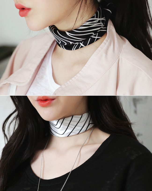 Độ sành điệu và phổ biến của vòng choker thì hẳn các nàng ai cũng đã biết rõ. Vậy nếu thay vì sử dụng vòng choker mảnh thông thường mà chuyển sang dùng khăn vuông màu mè thì sao? Vậy thì độ nổi bật và cá tính còn tăng hơn nhiều nữa đó. Kiểu kết hợp này còn đặc biệt ghi điểm khi các nàng kết hợp cùng những mẫu áo cổ trễ, cổ rộng của mùa hè để tạo thành vẻ nửa kín nửa hở, vô cùng sexy và hút mắt.