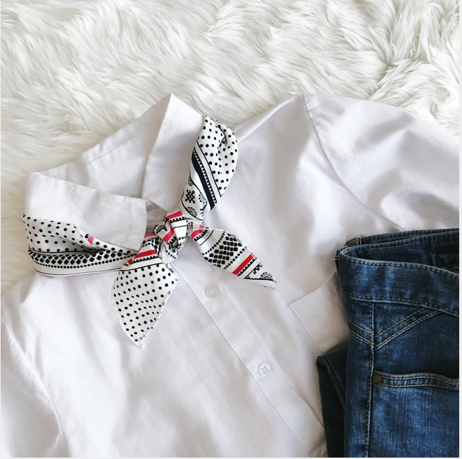 Dù là buộc thắt nút đơn giản, hay tạo thành hình nơ bướm cầu kỳ thì khăn vuông cũng làm tròn nhiệm vụ biến món phụ kiện thông dụng trở nên thú vị, sáng tạo hơn. Ngoài ra, cách buộc ngẫu hứng này còn giúp các nàng ăn điểm thời trang ở độ thẩm mỹ và tinh tế tế.