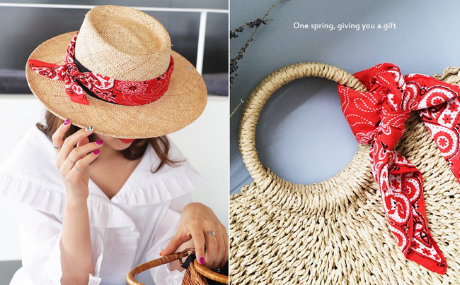 Mùa hè, các cô nàng thường ưu tiên sử dụng những món phụ kiện cói như mũ cói hay túi cói vì vẻ mộc mạc, mang đầy "tính biển" của nó. Tuy nhiên cũng vì phổ biến nên đôi khi phụ kiện cói dễ trở nên nhàm chán, thiếu mới mẻ, độc đáo. Vậy thì lúc này, khăn vuông họa tiết chính là một người bạn vô cùng "ăn ý" biến món phụ kiện của bạn trở nên độc nhất vô nhị.