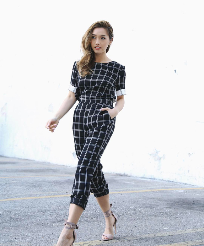 Khác với phong cách năng động thường ngày, dạo gần đây, Jenn Im lại chuyển sang style nữ tính với cả set kẻ caro cùng cao gót da lộn màu be hồng.
