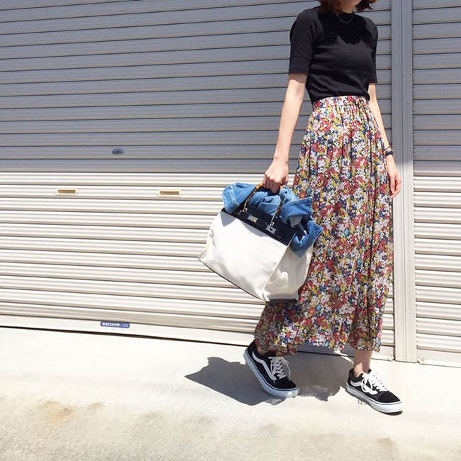 Chân váy midi cùng sneaker trẻ trung chính là bộ đôi hoàn hảo giúp bạn chống nắng hiệu quả mà vẫn không quá già dặn hay xì tin.