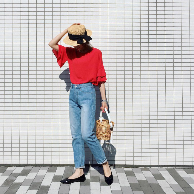 Màu đỏ luôn là tông giúp chúng ta nổi bật hơn cả. Chỉ cần diện áo đỏ, cả set đồ của bạn cũng bừng sáng thêm nhiều phần.