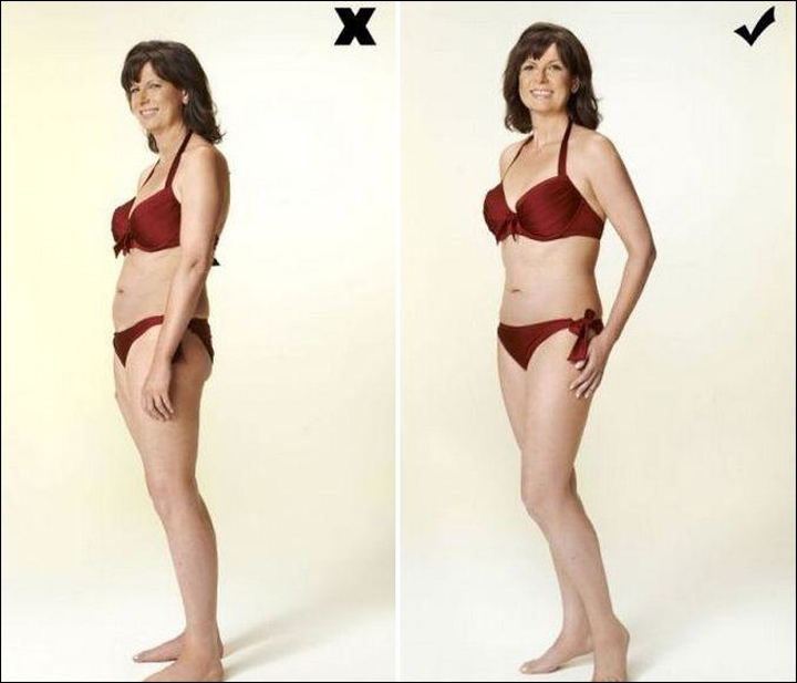 Cách bạn đứng cũng ảnh hưởng nhiều tới ngực của bạn. Một tư thế xấu có thể làm hỏng bộ ngực theo thời gian. Như vậy, khi bạn di chuyển, hãy giữ bộ ngực đứng yên nếu bạn muốn bộ ngực đẹp. Hãy bỏ tư thế “gù lưng”, cần đưa vai ra phía sau, lưng thẳng, dáng đứng như một nữ hoàng thì ngực bạn sẽ ít có xu hướng “rơi” xuống.
