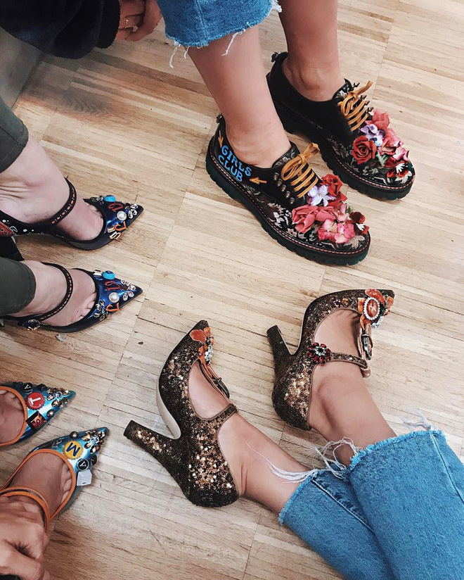 Những thiết kế giày dép đính kết cầu kỳ cũng là một trong những xu hướng gây tiếng vang trong nửa đầu năm 2017. Không còn sự đơn giản quen thuộc như thường thấy, những đôi dép/giày cả bệt lẫn cao gót đều được đính kết khá cầu kỳ, khi thì thêu hoa sắc nét, khi lại đính đá lấp lánh nổi bần bật... B-ắt đầu từ những đôi sneaker thêu hoa, tiếp đến là đủ kiểu giày dép thêu và đính kết khiến xu hướng giày năm nay bắt mắt và độc đáo hơn bao giờ hết.