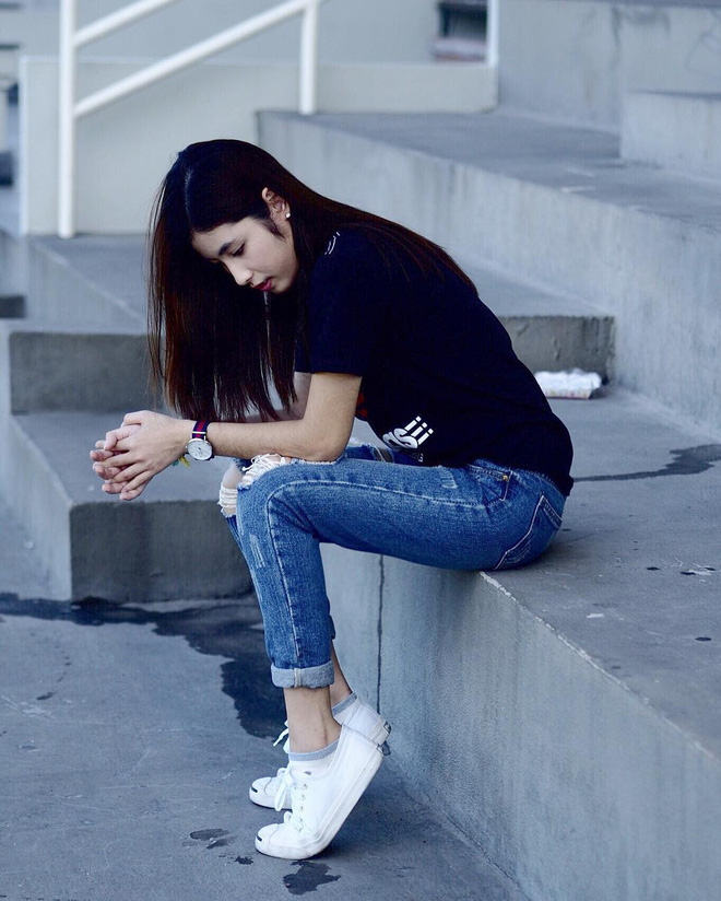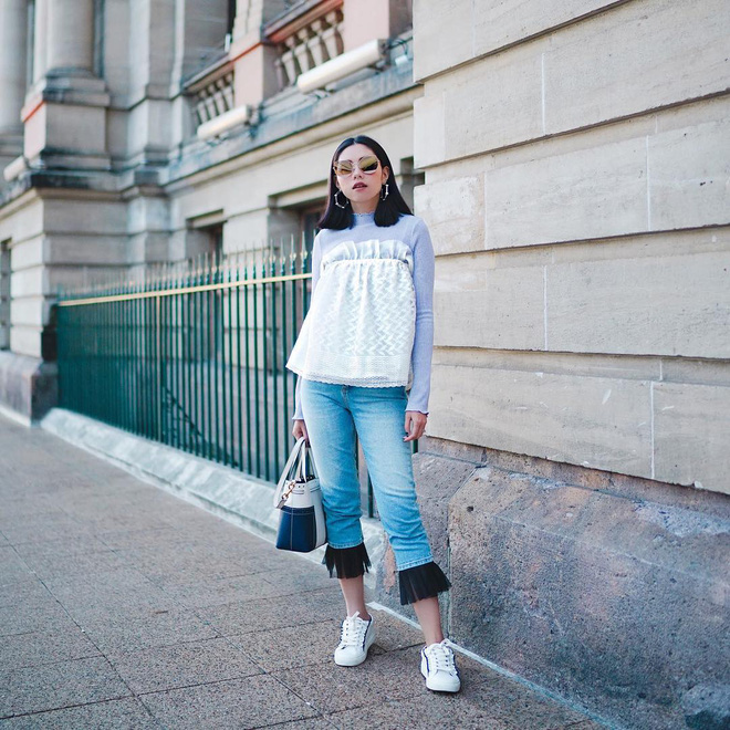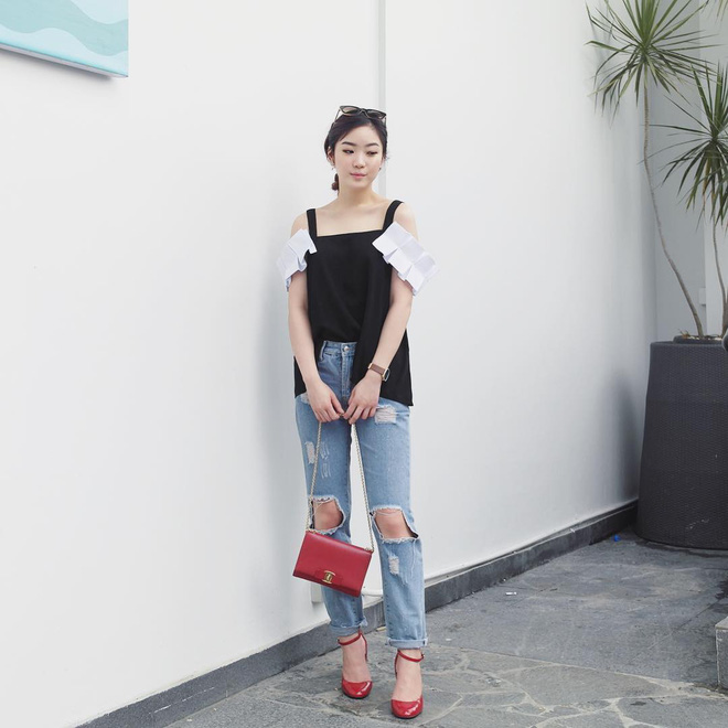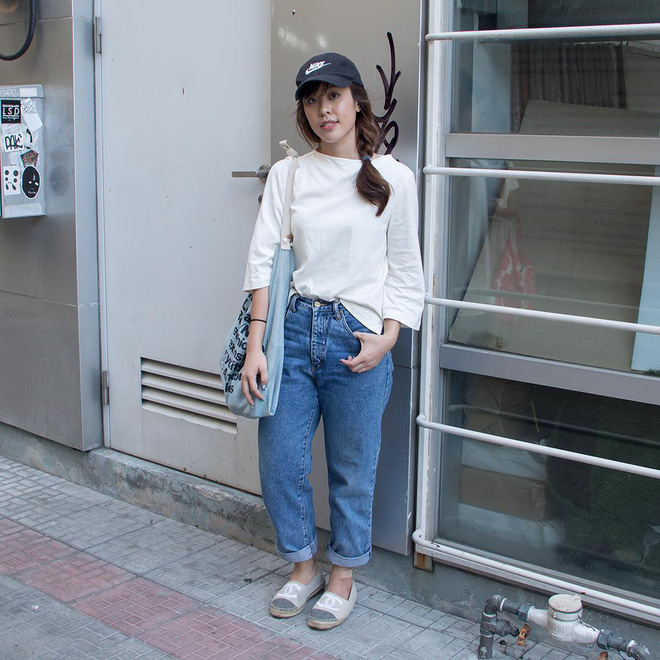 Những chiếc quần "lửng lơ" như quần baggy tuy có vẻ trẻ trung nhưng lại hoàn toàn phô diễn phần bắp chân to và đôi chân không được dài cho lắm của khổ chủ. Quần jeans ống rộng thì lại là quá dài, như "nuốt" luôn đôi chân vậy.