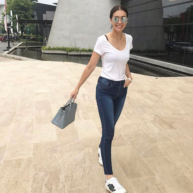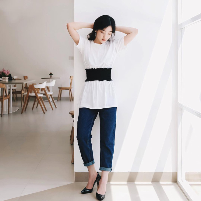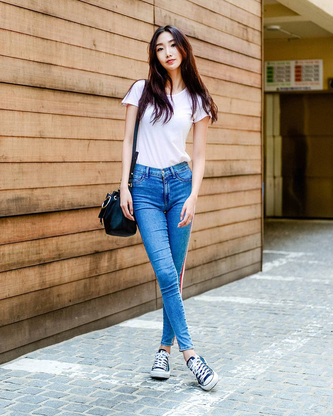 Còn với những cô nàng vừa có đôi chân dài lại ẩn hiện những đường cong hấp dẫn thì bạn có thể thoải mái lựa chọn chiều dài quần jeans, nhưng bạn lưu ý là những chiếc quần eo cao sẽ luôn là sự lựa chọn tuyệt nhất để đôi chân "đã dài lại càng dài thêm".