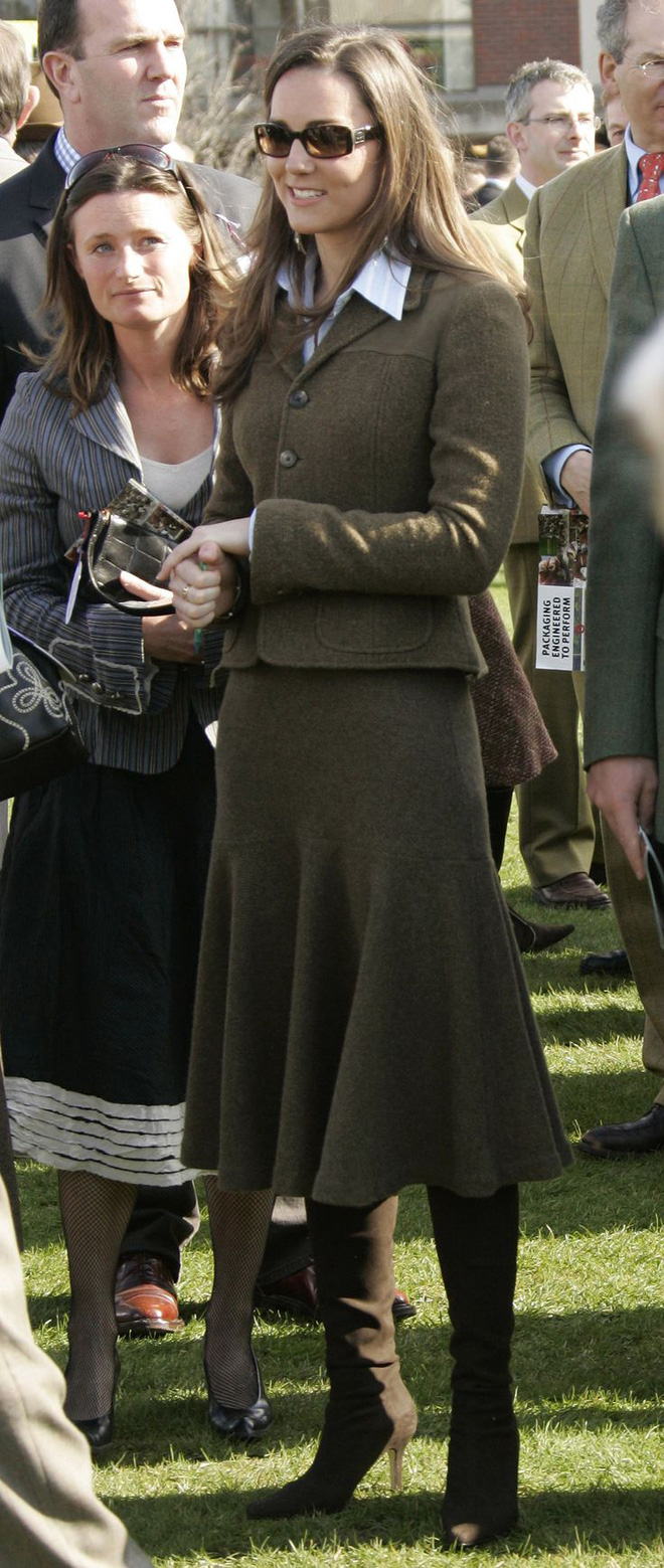 Áo len phối cùng chân váy kaki và boots khi đi dạo hồi năm 2007, có lẽ chỉ có Kate Middleton mới có gu thời trang "khác lạ" thế này.