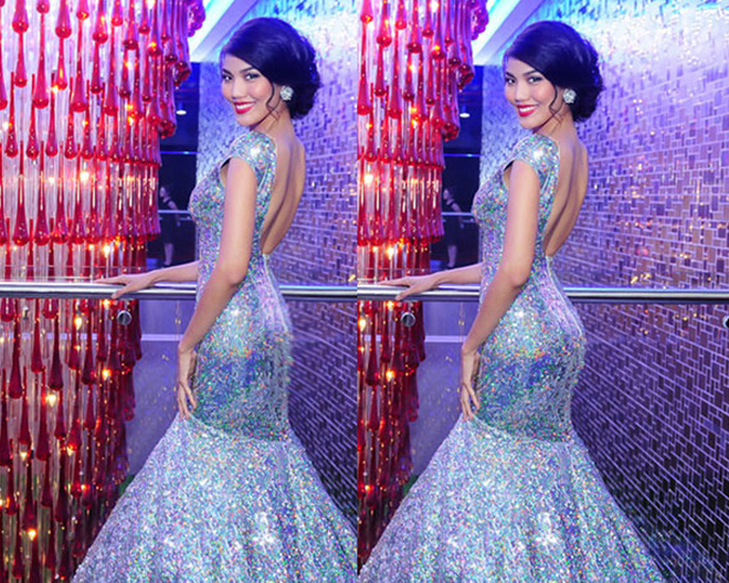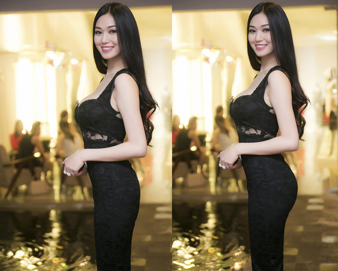 Vòng 3 có phần cong cớn quá đà (ảnh phải) của Elly Trần chắc chắn là nhờ đến phụ kiện rồi, nhờ vậy mà cô nàng mặc đầm ôm sát nóng bỏng đến thế kia cơ mà.