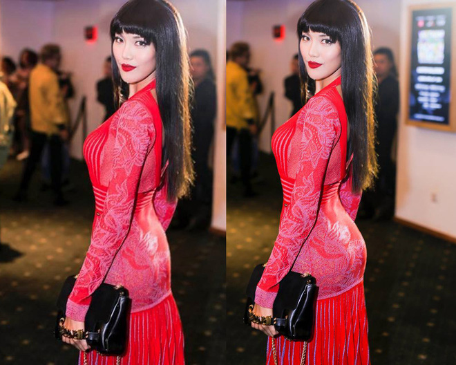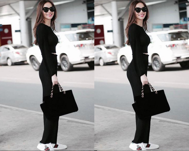 Màu đen sẽ vô tình che đi các đường cong, đặc biệt là với quần vải màu đen, vậy nên Hà Hồ mới dùng thêm quần độn (ảnh phải) để vóc dáng gợi cảm đúng chuẩn đường cong chữ S, so với một vòng 3 không mấy gợi cảm (ảnh trái) thì rõ ràng thêm quần độn nó phải khác biệt hẳn chứ.