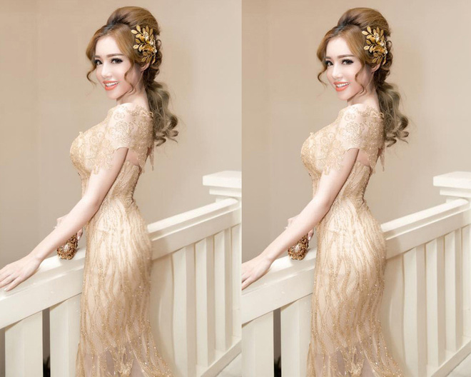 Sự khác biệt rõ nhất có lẽ là với bức hình này. Elly Trần một bên có thêm phụ kiện độn đẩy (ảnh phải) một bên được chỉnh cho vòng 3 nhỏ hơn (ảnh trái), thì không thể phủ nhận một điều độn vòng 3 lên vóc dáng của Elly Trần khi mặc đầm ôm sát gợi cảm hút mắt đến nhường này.