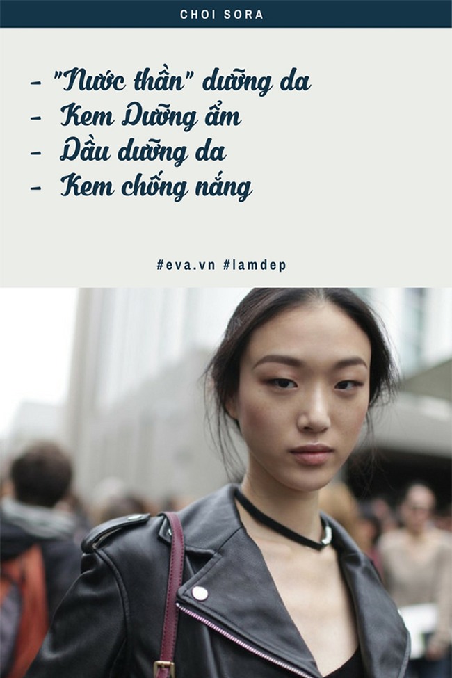 Quán quân Next Top Model Hàn quốc tin vào công dụng của việc chống nắng bằng việc sử dụng nhiều lớp sản phẩm cùng lúc. Trước khi rời khỏi nhà, chân dài Choi Sora thoa “nước thần” dưỡng da và kem dưỡng ẩm, sau đó là một lớp dầu dưỡng rồi cuối cùng mới là kem chống nắng để bảo vệ làn da cả ngày. Quả là kỳ công đúng không các cô gái?