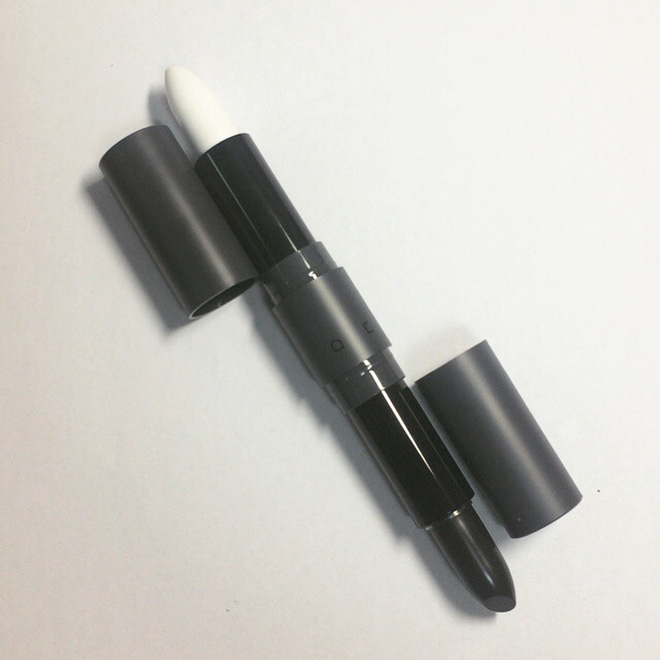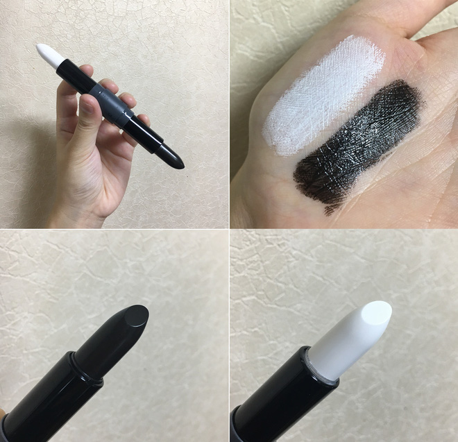 Nhìn thoáng qua, thỏi son này dễ khiến nhiều người lầm tưởng là một thỏi che khuyết điểm hoặc tạo khối. Nhưng thực chất, nó là thỏi son có 2 đầu mang màu đen – trắng. Với 2 màu son độc đáo này, bạn có thể vừa sử dụng như một màu son độc – lạ thông thường, mà lại còn có thể mix với những màu son bạn sẵn có ở nhà để tạo nên sắc son mới.