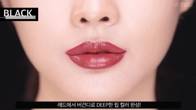 Ngược lại, với đầu son đen, sắc sẫm sẽ khiến môi lên thiên về tông lạnh, màu đất thời thượng nhiều hơn. Vì màu son này vốn đã tối, nên bạn cần đánh màu son mà bạn lựa chọn trước, rồi chấm son đen vào phần lòng môi. Sau đó dùng tay hoặc cọ môi để tán đều màu son; tùy theo sắc sẫm mà bạn muốn, bạn có thể thêm bớt gia giảm sắc đen thẫm của son.
