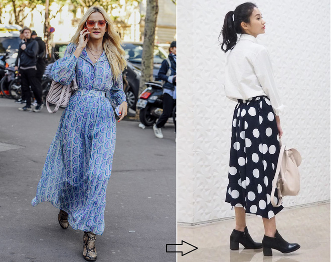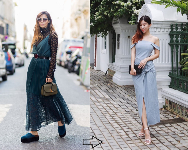 Nói đơn giản thì cách diện váy dáng dài cùng với boots da tuy có phần cá tính nhưng cũng dễ đẩy bạn vào tình thế "kín cổng cao tường", làm thiếu đi chút phóng khoáng, điệu đà của mẫu váy thướt tha này. Bởi vậy, nếu vẫn yêu thích những đôi boots da thì bạn nên chọn boots cổ thấp hoặc cắt đi đôi chút phần chân váy để tránh tạo cảm giác cổ hủ, nặng nề. Hoặc bạn có thể chuyển hẳn sang những mẫu giày cao gót thanh thoát để làm lộ đôi chút những móng chân xinh xẻo được cắt tỉa, sơn bóng điệu đà.
