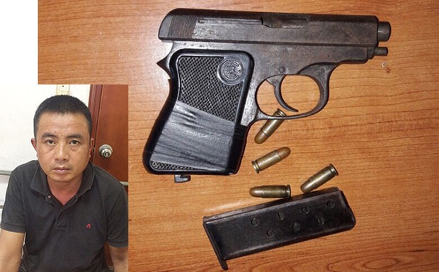 Đối tượng Trần Quế Lâm và khẩu súng dùng để gây án.