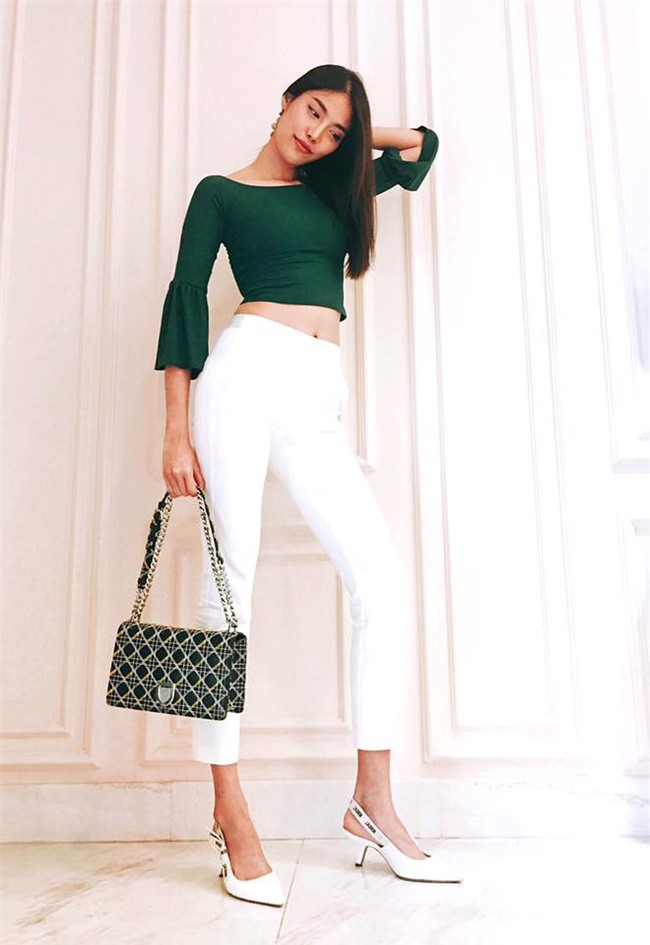 Chẳng hẹn mà gặp, cả Lan Khuê và Diễm My đều "phải lòng" chiếc áo trễ vai tay loe kiểu cách màu xanh rêu điệu đà.