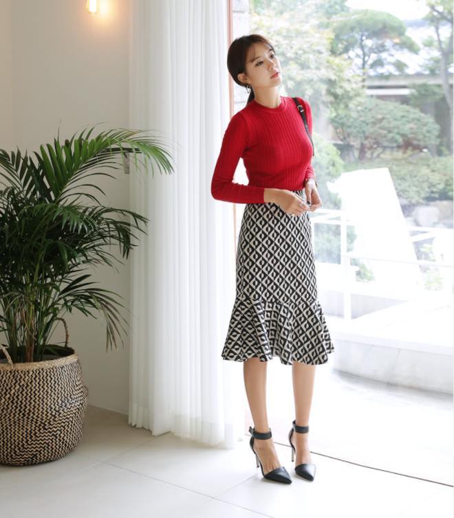 Thiết kế này kén dáng hơn hẳn so với những kiểu chân váy khác, nó ôm sát vào vòng 3 nên nếu không sở hữu đường cong hút mắt thì khó lòng có thể diện đẹp. Với phần gấu xòe khá điệu, thiết kế này sẽ đẹp nhất khi được mix cùng những kiểu áo đơn giản, tiết chế các chi tiết cầu kỳ rườm rà để tạo sự thanh thoát, sang trọng cho người diện.