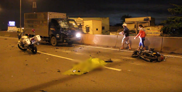 Khi vừa lên dốc cầu vượt An Sương thuộc địa bàn xã Bà Điểm, huyện Hóc Môn thì bất ngờ tông trực diện vào xe tải do tài xế (khoảng 45 tuổi) điều khiển mang BKS: 51C-471... lưu thông hướng từ quận Thủ Đức về quận Bình Tân.