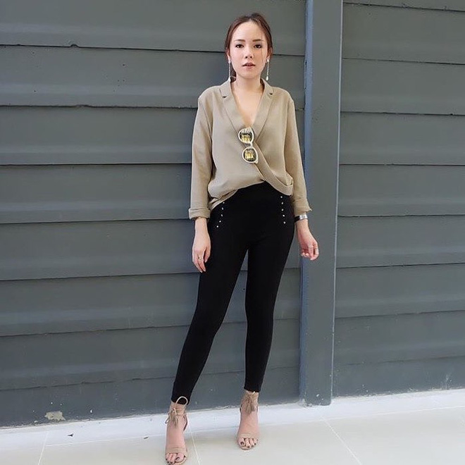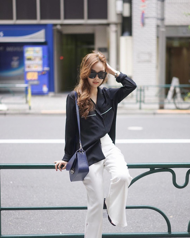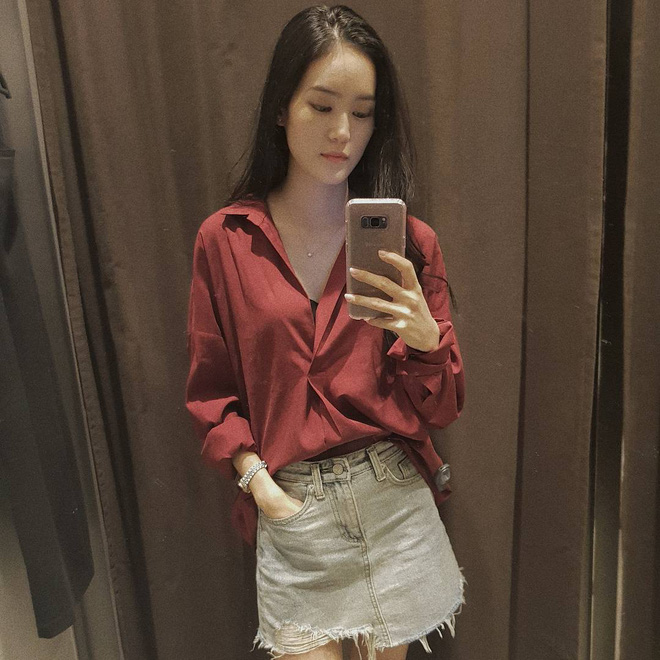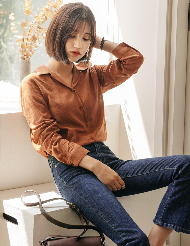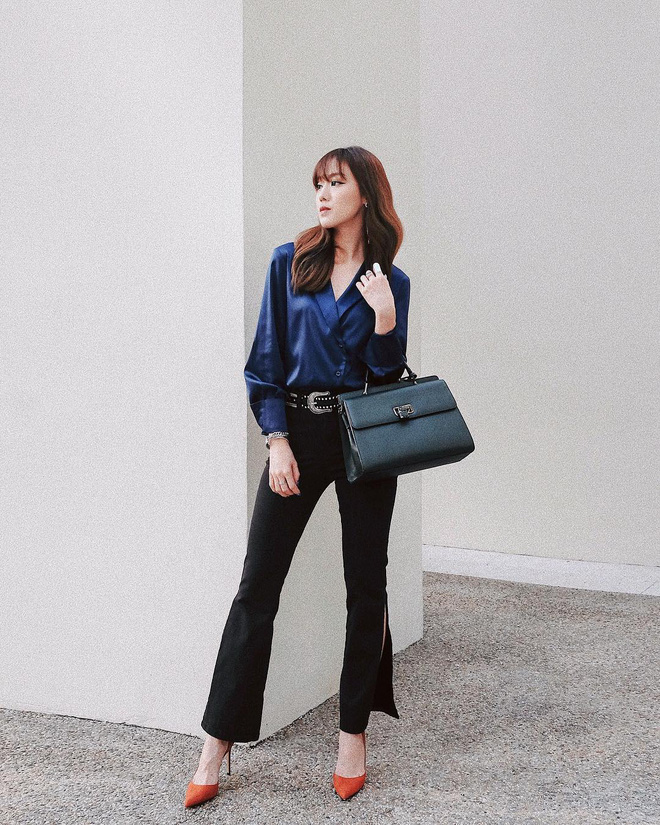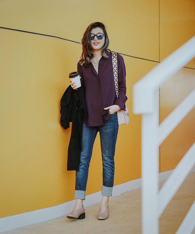 Cách sơvin như này sẽ khiến set đồ của bạn trông phóng khoáng và hợp thời hơn. Ngoài ra, nếu đi chơi, bạn cũng có thể thả thêm 1,2 khuy áo trên cùng, vừa khoe khéo xương quai xanh để tăng điểm sexy mà vẫn sành điệu.