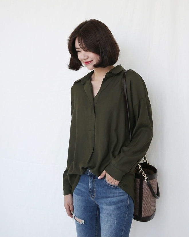 Thông thường, khi chọn sơmi, các nàng thường chọn những màu sắc sáng như trắng, xanh pastel, kem, hồng… Những màu sắc này được xem là an toàn, dễ mix đồ, mặc đi làm cũng được mà mặc đi chơi cũng xong. Cũng chính vì lẽ đó, mà sơmi tối màu có phần lép vế và thường bị các nàng bỏ qua.
