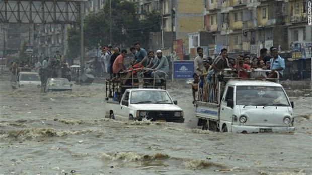 Sau khi tàn phá Ấn Độ, Nepal và Bangladesh, mưa lớn bắt đầu xuất hiện tại khu vực Tây Bắc Pakistan. Ở Karachi, thành phố lớn nhất Pakistan, 16 người - trong đó hầu hết là trẻ em - đã tử vong do ảnh hưởng của lũ lụt tính đến ngày 1-9. Trong số này, ít nhất 11 người chết vì điện giật do nước biển dâng cao làm ngập lụt các khu đô thị, theo Quỹ Từ thiện Edhi Foundation.