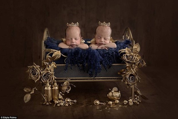 Hai đứa trẻ ngủ ngon lành trong chiếc nôi mang phong cách "hoàng gia".
