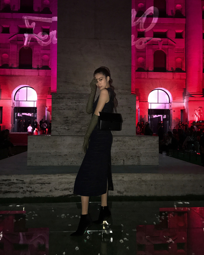 Tham dự tuần lễ thời trang, cô còn trình làng 1 set đỏ burgundy siêu ấn tượng. Từ đầu tới chân, không có bất kỳ item nào là thừa thãi cả.