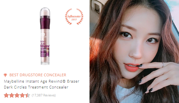 Kem che khuyết điểm Maybelline Instant Age Rewind Eraser Dark Circles Treatment Concealer (205.000 VNĐ): Cây che khuyết điểm "thần kỳ" được rất nhiều beauty blogger yêu thích trong việc che quầng thâm này của Maybelline đạt 4,5 sao trên tổng số 17.300 review.