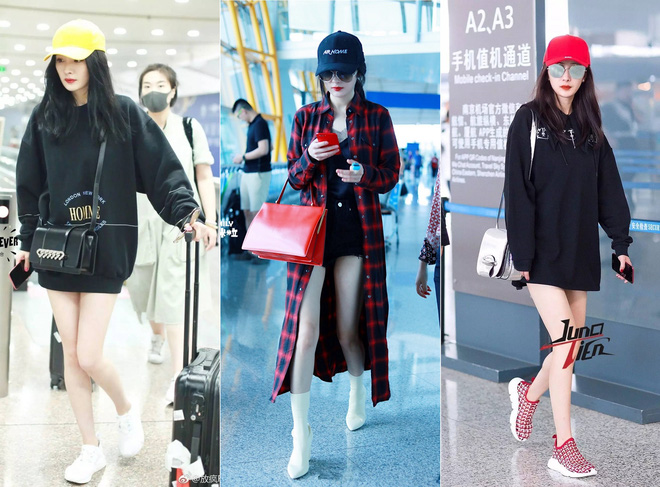 Tuy không phải là thiết kế gì mới mẻ, nhưng mũ lưỡi trai lại luôn món phụ kiện không thể thiếu của những cô nàng cá tính, mang phong cách trẻ trung, năng động. Điển hình nhất, có lẽ phải kể đến cô nàng Dương Mịch, bà mẹ 1 con vốn nổi tiếng với danh hiệu "nữ hoàng thời trang sân bay". Thực tế thì thời trang sân bay của cô nàng vốn không quá cầu kì, quanh quẩn với quần jeans, áo hoodie, áo sơmi… Nhưng cô nàng có cách sử dụng phụ kiện thông minh, tận dụng các loại mũ lưỡi trai sắc màu để tạo thành điểm nhấn đã giúp bộ trang phục của cô trở nên đẹp mắt và đẳng cấp hơn hẳn.