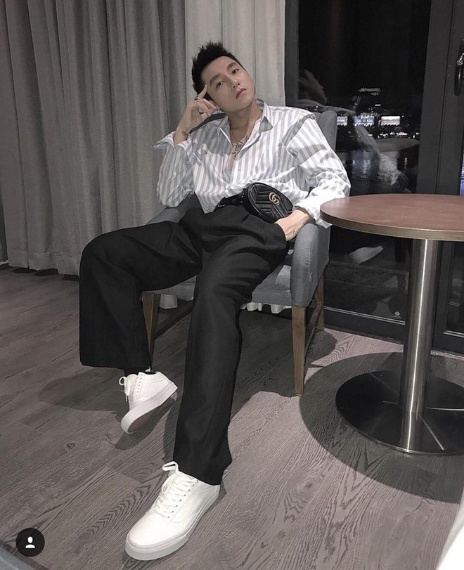 Không chỉ phái đẹp mà cả Sơn Tùng MTP cũng update mẫu túi này cho street style của mình. Anh chàng có sự kết hợp khá thú vị giữa set đồ chỉnh chu với sơmi và quần âu nhưng diện theo hướng phá cách, cùng túi đeo hông màu đen cơ bản.