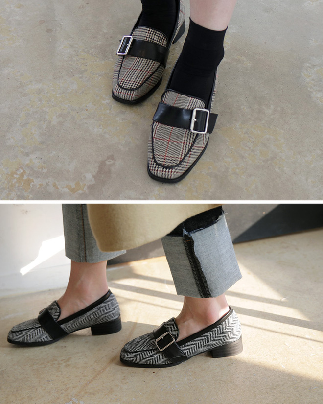 Nhìn qua những đôi loafer mũi vuông trông khá nam tính, tuy nhiên nếu không thích chất liệu da menswaer thì bạn có thể chuyển sang những đôi chất liệu vải hay họa tiết kẻ. Kiểu họa tiết kẻ nhìn vừa nữ tính, lại vừa cổ điển, nhẹ nhàng và thời thượng, rất phù hợp với những bộ đồ công sở.