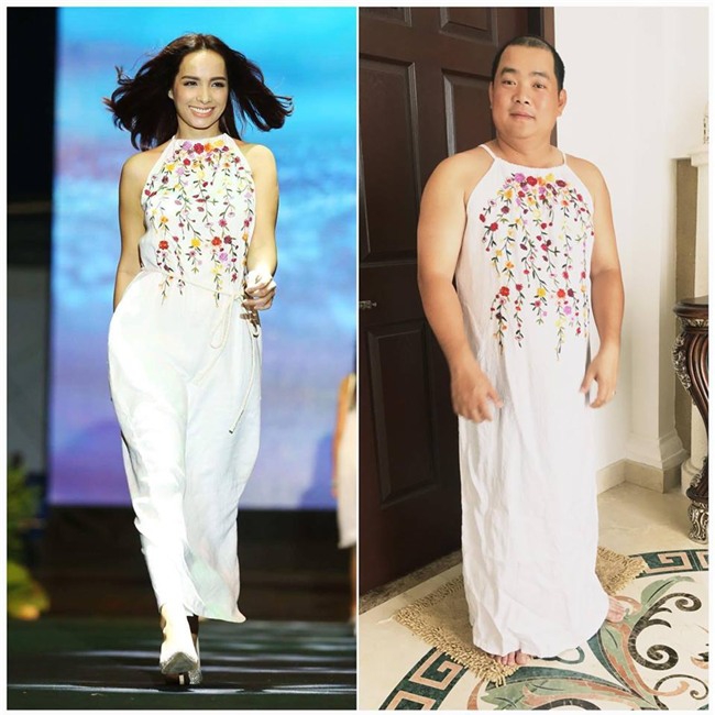Mới đây, Minh Khang khiến nhiều người tò mò khi diện... váy của vợ. Hình ảnh hài hước và dễ thương của anh nhận được nhiều bình luận tích cực từ fan và người nổi tiếng. Hà Kiều Anh, Pha Lê, Quốc Thiên, ... dành sự thích thú cho hình ảnh dễ thương của cặp vợ chồng nổi tiếng.