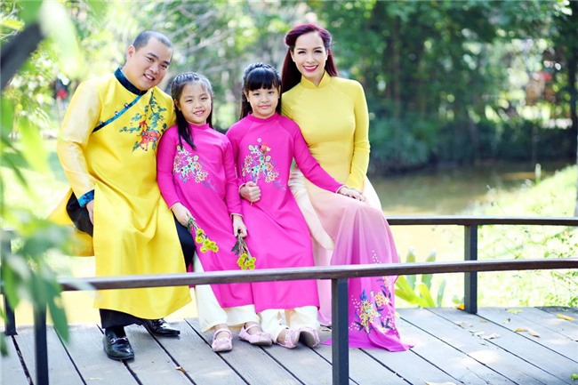Trong bộ ảnh đón xuân, gia đình nhỏ cũng chọn áo dài đồng điệu để ghi lại những khoảnh khắc hạnh phúc tay trong tay. Chính cách cùng nhau đồng hành trong những việc nhỏ là gia vị khiến cho Thúy Hạnh - Minh Khang trở thành cặp đôi luôn được ngợi ca trong showbiz.