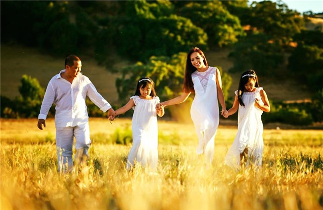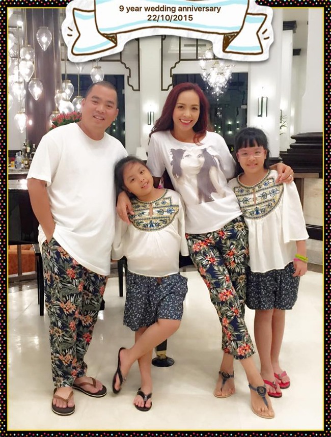 Hình ảnh tình thân mến thương của gia đình cựu người mẫu Thuý Hạnh trong ngày tròn 9 năm bên nhau. Hai vợ chồng cùng diện quần hoa trẻ trung, 2 cô con gái nhỏ nhí nhảnh với đồ họa tiết nhí.