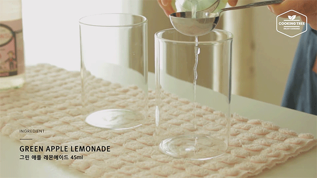- Đầu tiên, bạn đổ nước chanh màu xanh vào một chiếc cốc.
