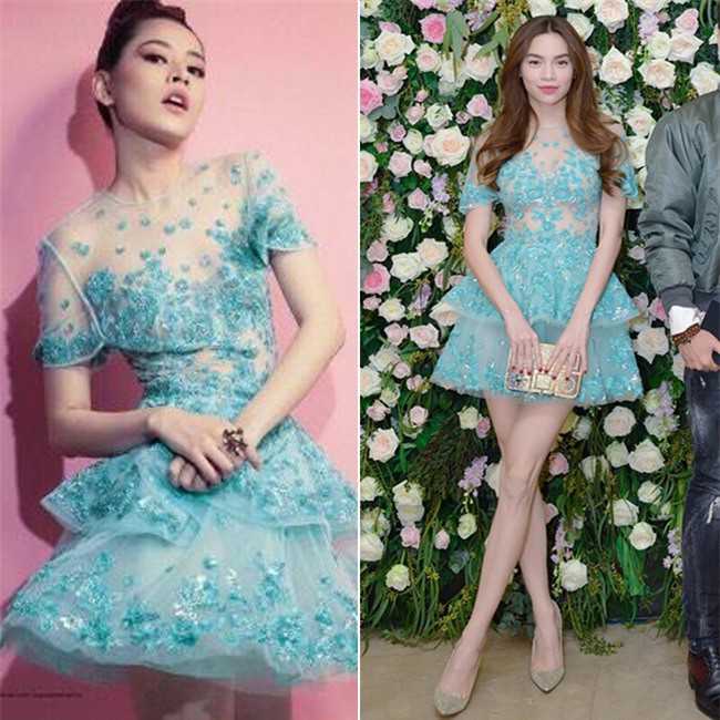 Tham gia sự kiện khai trương nhãn hàng thời trang ở Hà Nội, Đồng Ánh Quỳnh cũng "diện lại" mẫu váy sequine lấp lánh họa tiết hoa nhí mà trước đó Chi Pu cũng từng trưng diện. Giọng ca "Từ hôm nay" mang phong cách cá tính khi kết hợp cùng boots cao cổ sắc đỏ, còn học trò team Minh Tú lại mang vẻ đẹp quý cô gợi cảm.