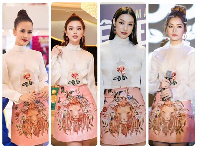 Chi Pu đã mạnh tay đầu tư cả cây đồ hiệu đi event và có màn “chạm trán” với Phạm Hương bởi đây là trang phục mà Hoa hậu Hoàn vũ đã mặc khi ghi hình The Face 2016. Có thể nói cả hai đều “một chín một mười” khi diện cùng item.
