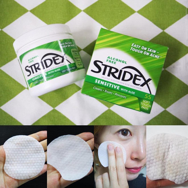 Stridex Sensitive Acne Treatment Pads (khoảng 70.000VNĐ/hộp 55 miếng).